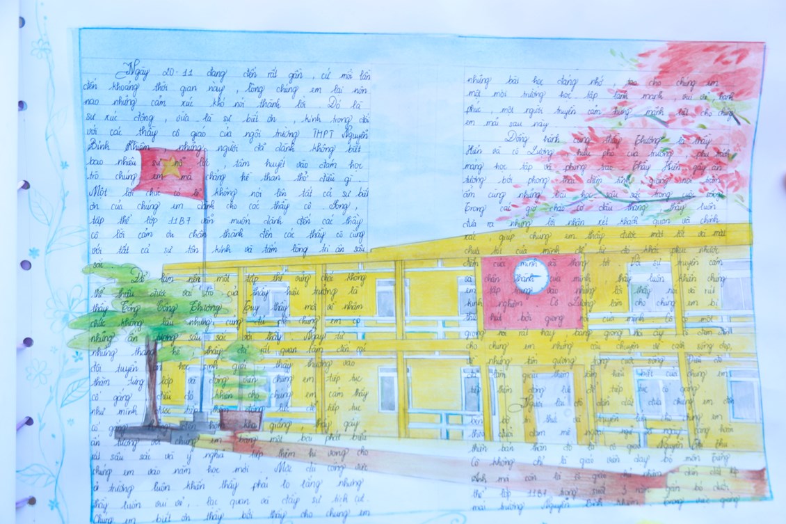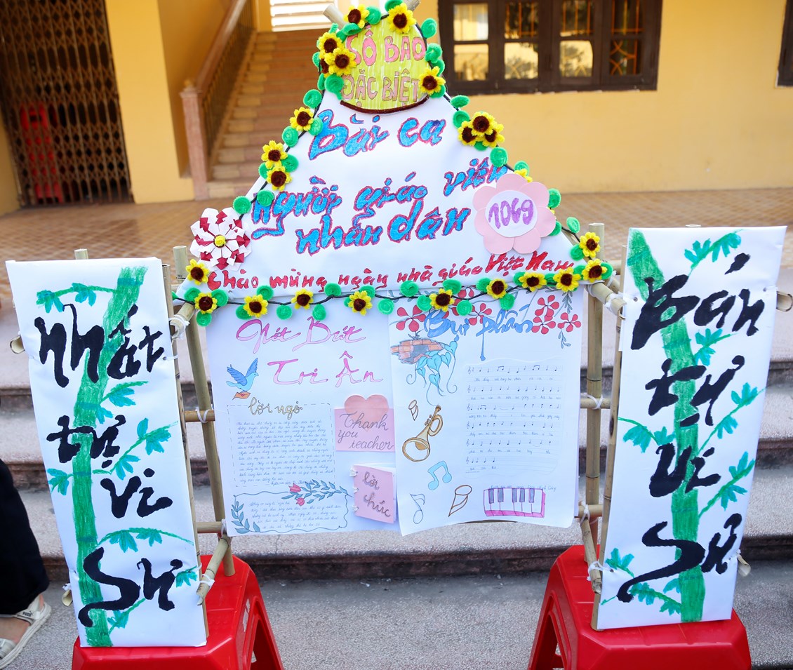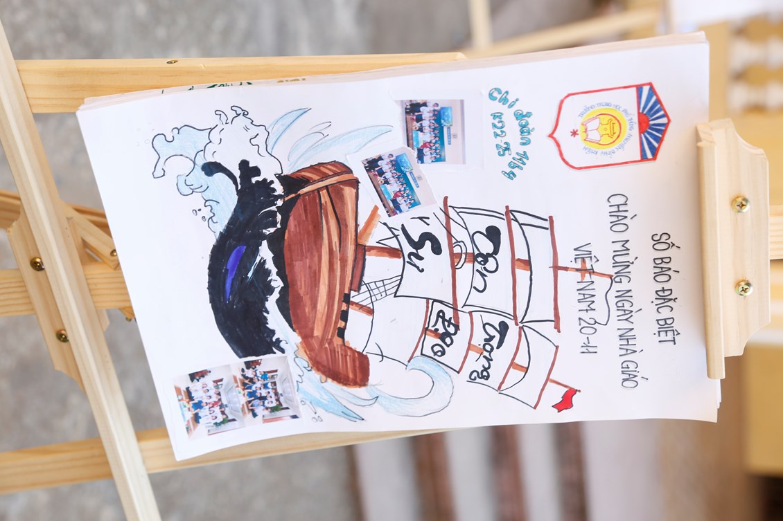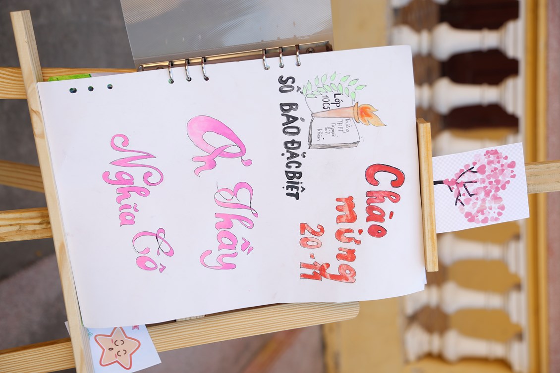 Hoạt động làm báo tường chào mừng ngày 20/11 là hoạt động không thể thiếu trong mỗi dịp thi đua chào mừng ngày Nhà giáo Việt Nam. Các lớp được triển khai nội dung ngay từ đầu tháng 11 để kịp chuẩn bị và hoàn thiện sản phẩm của mình sao cho đẹp, sáng tạo và ý nghĩa nhất. Chiều ngày 11/11/2023, sản phẩm của các lớp được trưng bày tại sân nhà E. Mỗi một tác phẩm mang một sắc thái, một phong cách riêng của từng lớp. Bằng tất cả tình cảm, tài năng các chi đoàn đã chăm chút cho tờ báo từ hình thức như: cách trình bày, cách phối màu, phối cảnh, chữ viết, nội dung bên trong. Từng nét chữ, từng bức ảnh là những tình cảm chúng em muốn tri ân tới các thầy cô. Thời gian đồng hành cùng nhau để hoàn thiện tạp san đã giúp chúng em xây dựng tinh thần đoàn kết, biết trân trọng những giờ phút quây quần bên nhau dưới mái trường thân yêu. Căn cứ theo tiêu chí đã đưa ra, ban tổ chức đã chọn lọc được các tập san đẹp, ý nghĩa với cơ cấu giải thưởng: 01 giải xuất sắc thuộc về lớp 11B1, 04 giải nhất, 06 giải nhì, 09 giải ba và 12 giải khuyến khích.