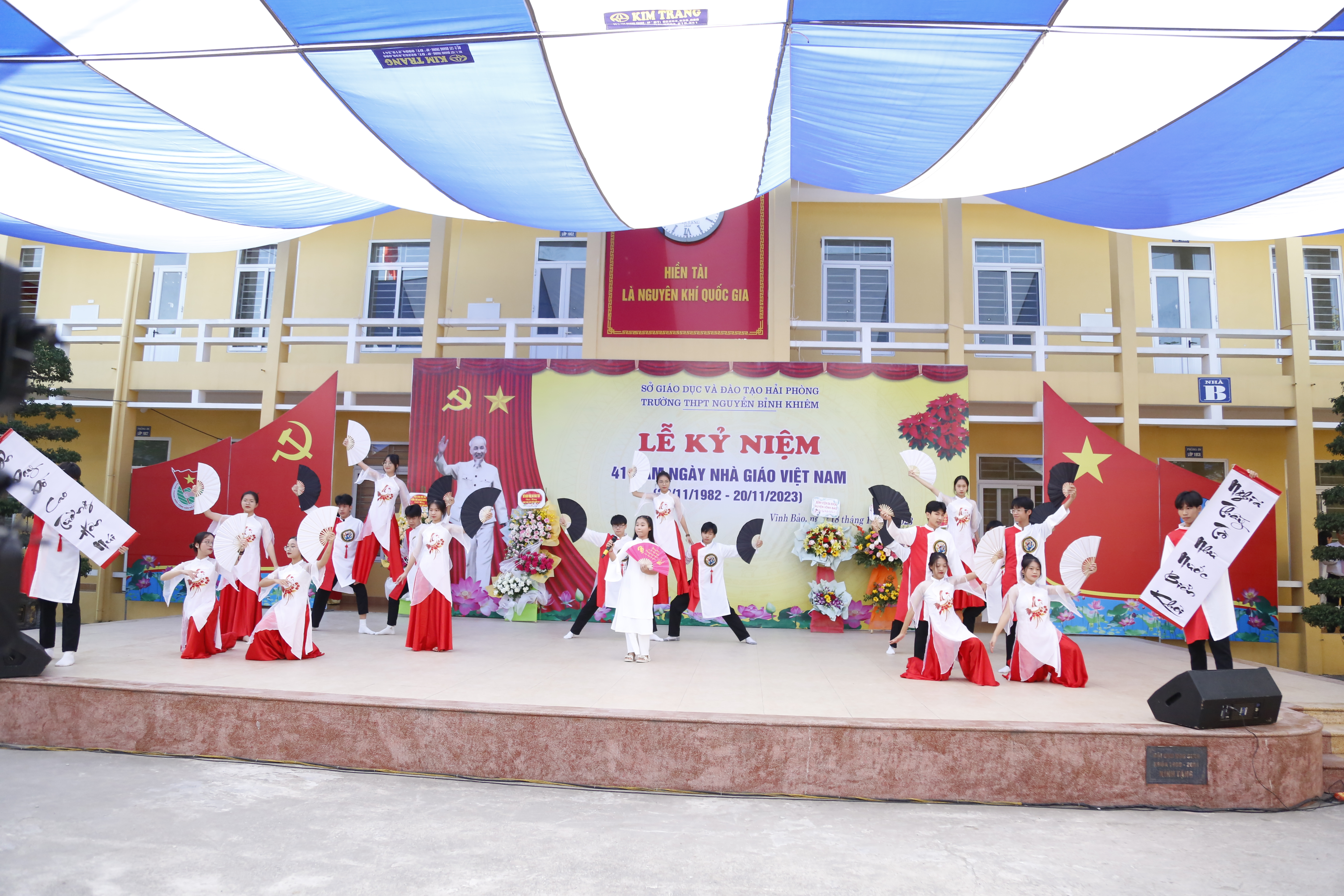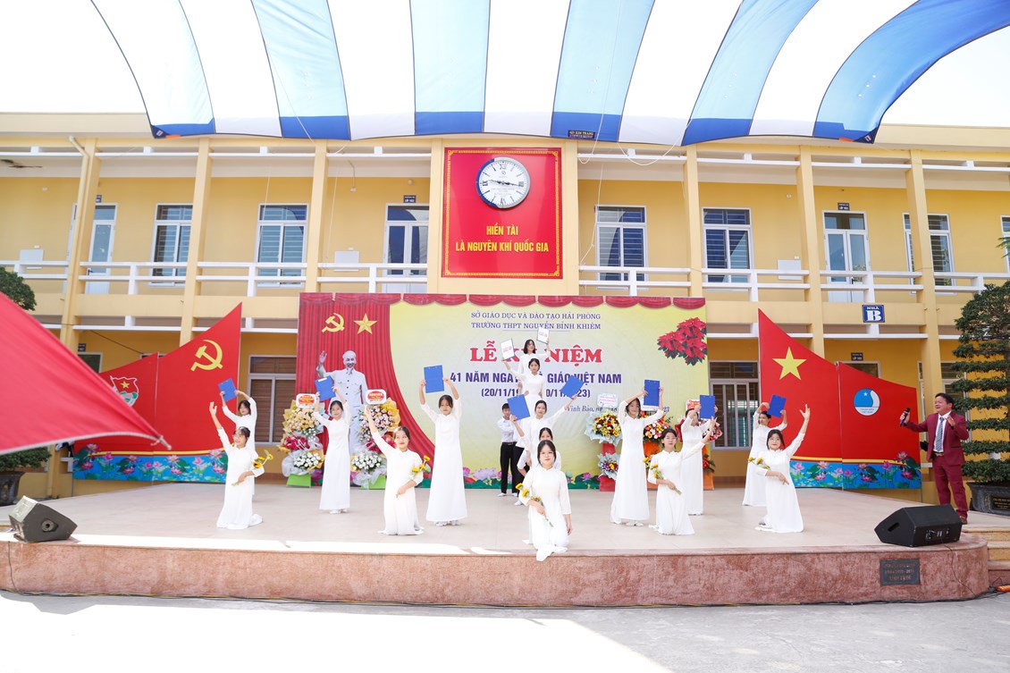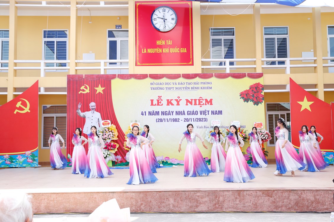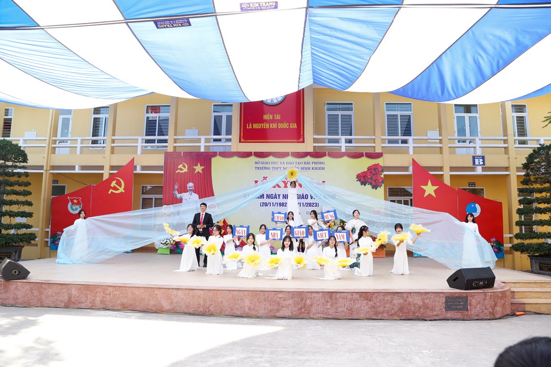 Để tổ chức buổi lễ 20-11 đầy ý nghĩa và đặc sắc. Các tiết mục văn nghệ luôn được các thầy cô quan tâm. Vừa qua ngày 11/11/2023 học sinh lớp của trường THPT Nguyễn Bỉnh Khiêm đã tham gia hội diễn văn nghệ tại sân nhà A của trường. Vui tươi, hào hứng, phấn khởi, múa hát với cả lòng mình,… là tinh thần chung của các lớp. Các tiết mục được biên đạo công phu, đầy tính nghệ thuật thể hiện tài năng, tình cảm chân thành nhất của mỗi học sinh dành tặng các thầy cô giáo.