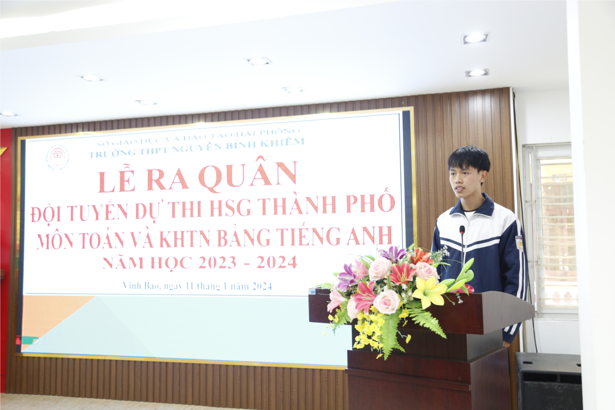 Chiều 11/01/2024 tại Hội trường trường THPT Nguyễn Bỉnh Khiêm đã diễn ra buổi lễ ra quân thi học sinh giỏi. Đến dự buổi lễ có các thầy cô trong Cấp uỷ, BGH nhà trường, các bậc phụ huynh là trưởng ban đại diện cha mẹ học sinh, các thầy cô phụ trách các đội tuyển và 40 em học sinh tham dự kì thi.