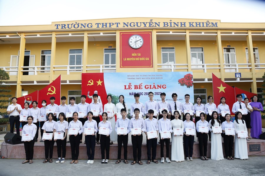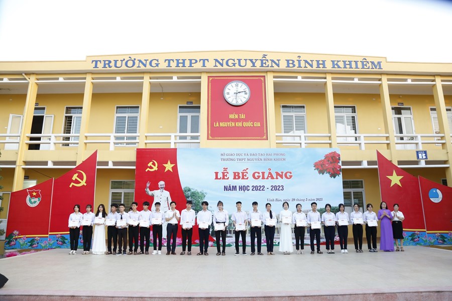 Sáng 29/5/2023, thầy và trò Trường THPT Nguyễn Bỉnh Khiêm đã long trọng tổ chức Lễ Bế giảng năm học 2022 – 2023 với biết bao dấu ấn, không ít khó khăn nhưng cũng đã gặt hái được nhiều thành quả đáng ghi nhận từ những nỗ lực, cố gắng bền bỉ của thầy và trò toàn trường.