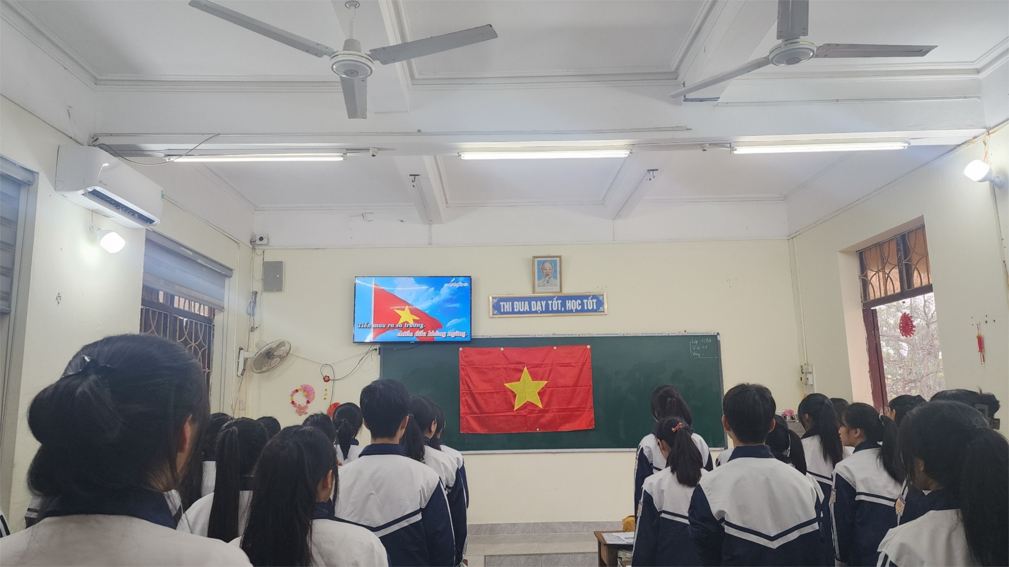 Cũng trong buổi lễ thầy Tống Công Thương - Bí thư Đảng bộ, Hiệu trưởng nhà trường đã có những lời chia sẻ đầy chân thành, đó là những niềm vui khi kỳ thi học sinh giỏi liên trường vừa qua các đội tuyển học sinh giỏi đã có những kết quả đáng tự hào nhưng cũng xen lẫn chút lo lắng về chặng đường học tập sắp tới của các em học sinh. Từ những lời tâm tình của thầy, các bạn như cảm nhận được sự trăn trở của thầy cô trước những thử thách phía trước, đặc biệt là về những kỳ thi quan trọng đang cận kề. Những lời dặn dò của thầy không chỉ là những nhắc nhở, mà còn là sự quan tâm, mong muốn từng học sinh đều có thể vững bước và nỗ lực hết mình.