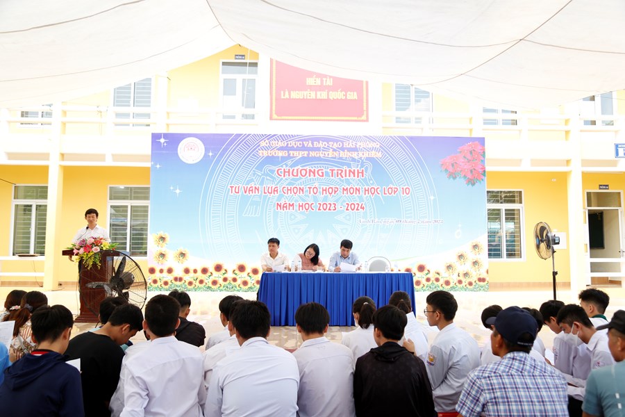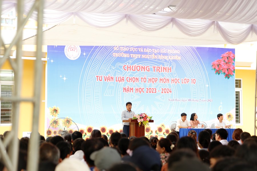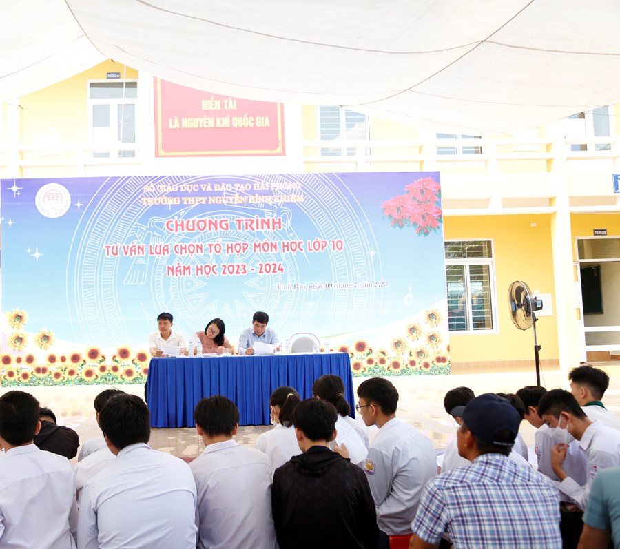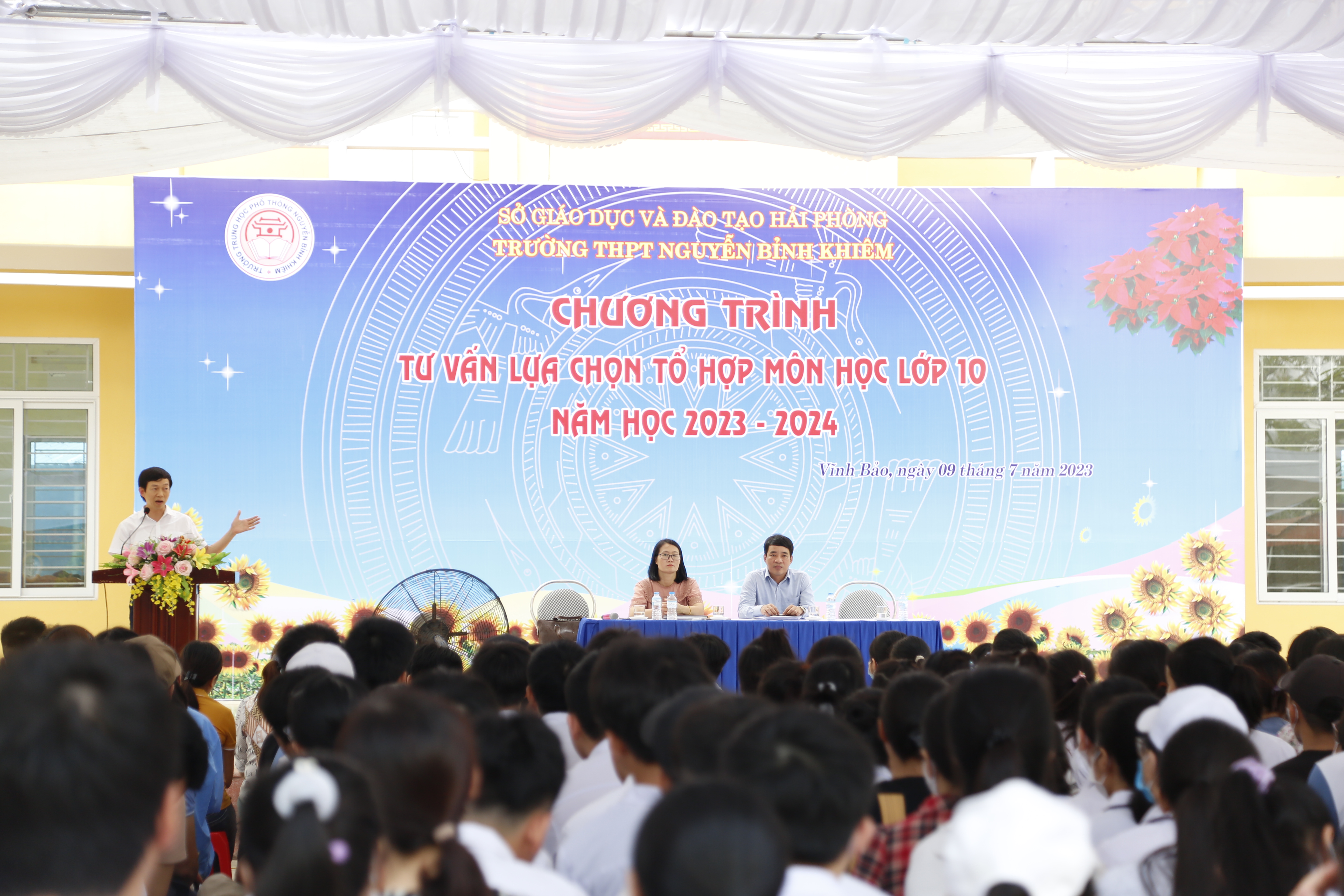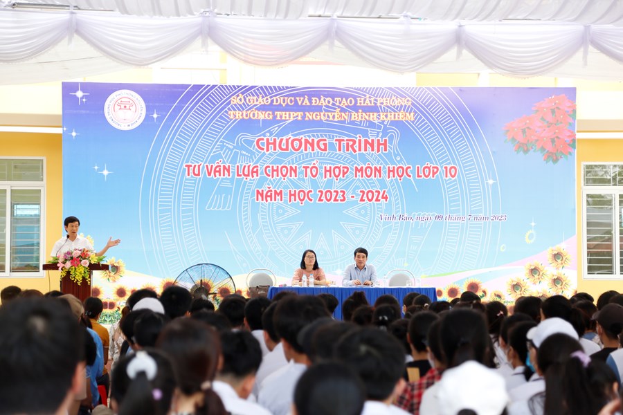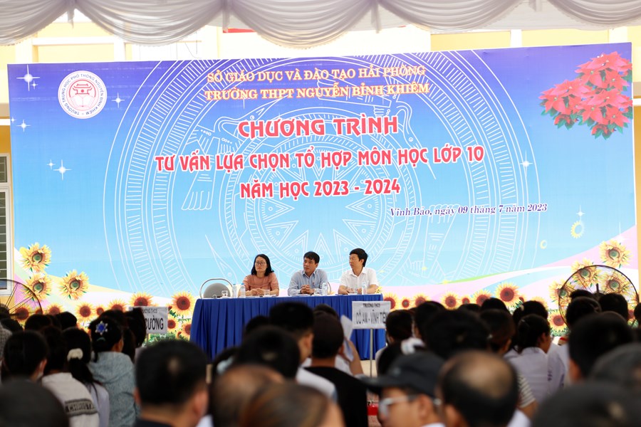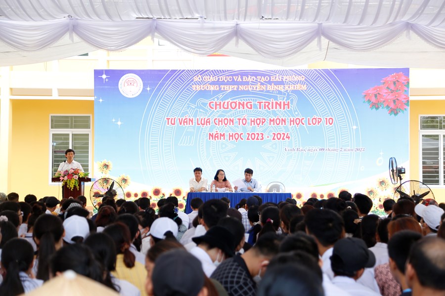 Sáng ngày 9/7/2023 Ban tuyển sinh trường THPT Nguyễn Bỉnh Khiêm đã tiến hành tư vấn lựa chọn tổ hợp môn học lớp 10 năm học 2023-2024. Tại buổi hội thảo, Nhà trường vinh dự được đón tiếp hơn 900 phụ huynh và học sinh lớp 10 đến tham dự và nghe tư vấn về Chương trình GDPT mới. Theo đó, bên cạnh các môn học bắt buộc như: Toán, Ngữ văn, Tiếng Anh, Lịch sử, GDTC, GD QPAN,… các bạn học sinh khối 10 còn có thể lựa chọn học tập thêm những môn học tự chọn thuộc các tổ hợp môn tự nhiên và xã hội. Trường THPT Nguyễn Bỉnh Khiêm xin chân thành cảm ơn quý phụ huynh và các em học sinh đã dành thời gian quý báu đến tham dự buổi tư vấn. Kính chúc quý phụ huynh và gia đình luôn dồi dào sức khỏe, hạnh phúc và thành công. Chúc các tân học sinh lớp 10 sẽ có những năm tháng học tập thật tốt và gặt hái được thành tích cao tại mái trường mang tên danh nhân văn hóa Trạng Trình Nguyễn Bỉnh Khiêm.