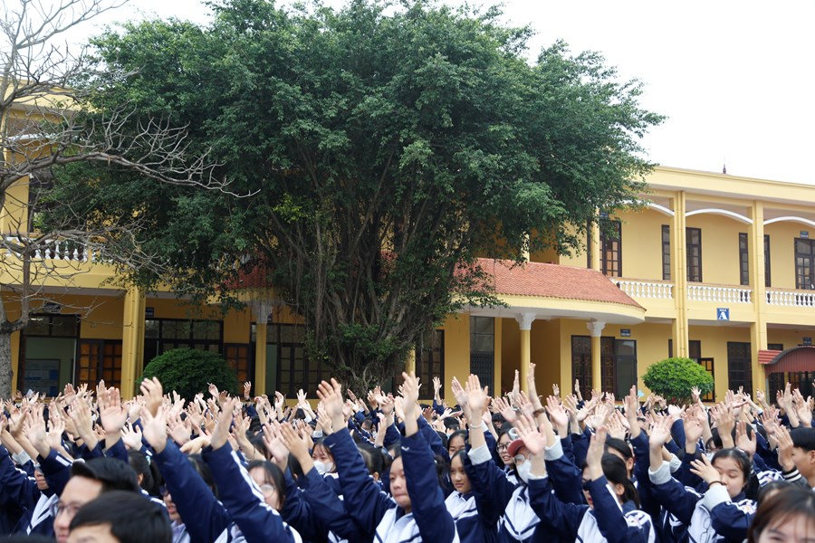 Màn khởi động chương trình rất ấn tượng và sôi nổi, thu hút sự tham gia nhiệt tình của tất cả các em học sinh.