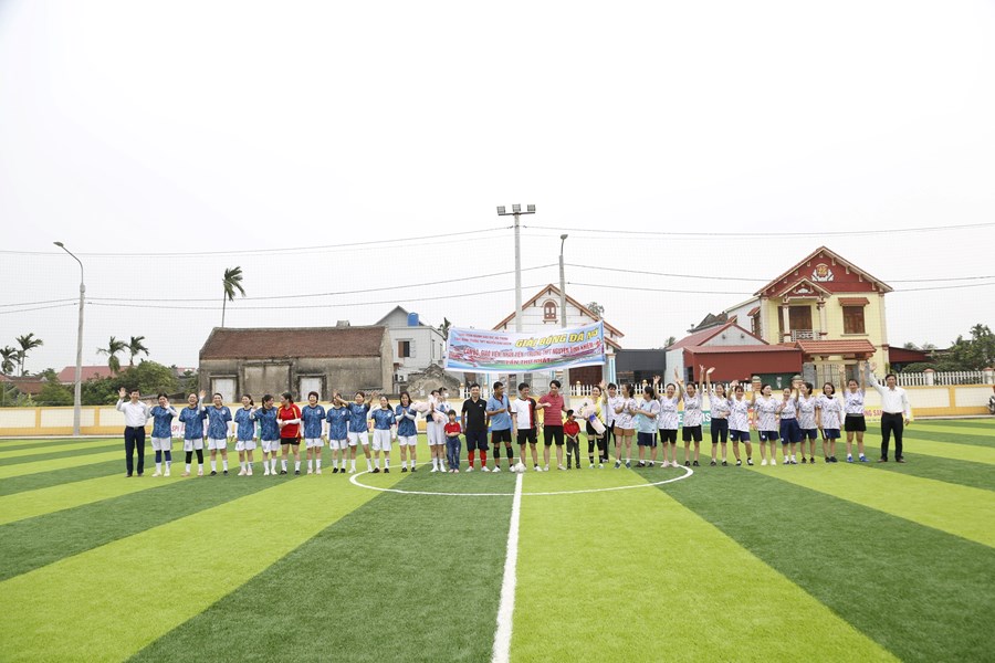 Vào lúc 15 giờ ngày 25/03/2023 tại sân cỏ nhân tạo xã Lý Học diễn ra trận bóng đá nữ với sự góp mặt của toàn thể các cô giáo trường THPT Nguyễn Bỉnh Khiêm với hai đội: Khoa học tự nhiên và Khoa học xã hội. Trước giờ thi đấu sân cỏ đã rất đông đúc khán giả đến động viên, cổ vũ với khí thế vô cùng hào hứng nhộn nhịp, đặc biệt là đội cổ động viên học sinh các lớp đi cổ vũ cho thầy cô của mình. Bằng sự miệt mài luyện tập chăm chỉ kết hợp cùng chiến thuật thi đấu bài bản cô Hoàng Thị Mau-đội Khoa Học Tự Nhiên đã rất nhanh chóng ghi bàn đầu tiên dẫn đầu tỉ số 1-0. Tiếp đến là cô Nguyễn Thị Nhung ghi bàn thắng thứ 2 cho đội KHTN. Trận đấu kết thúc với tỷ số 2-0 nghiêng về đội Khoa Học Tự Nhiên.