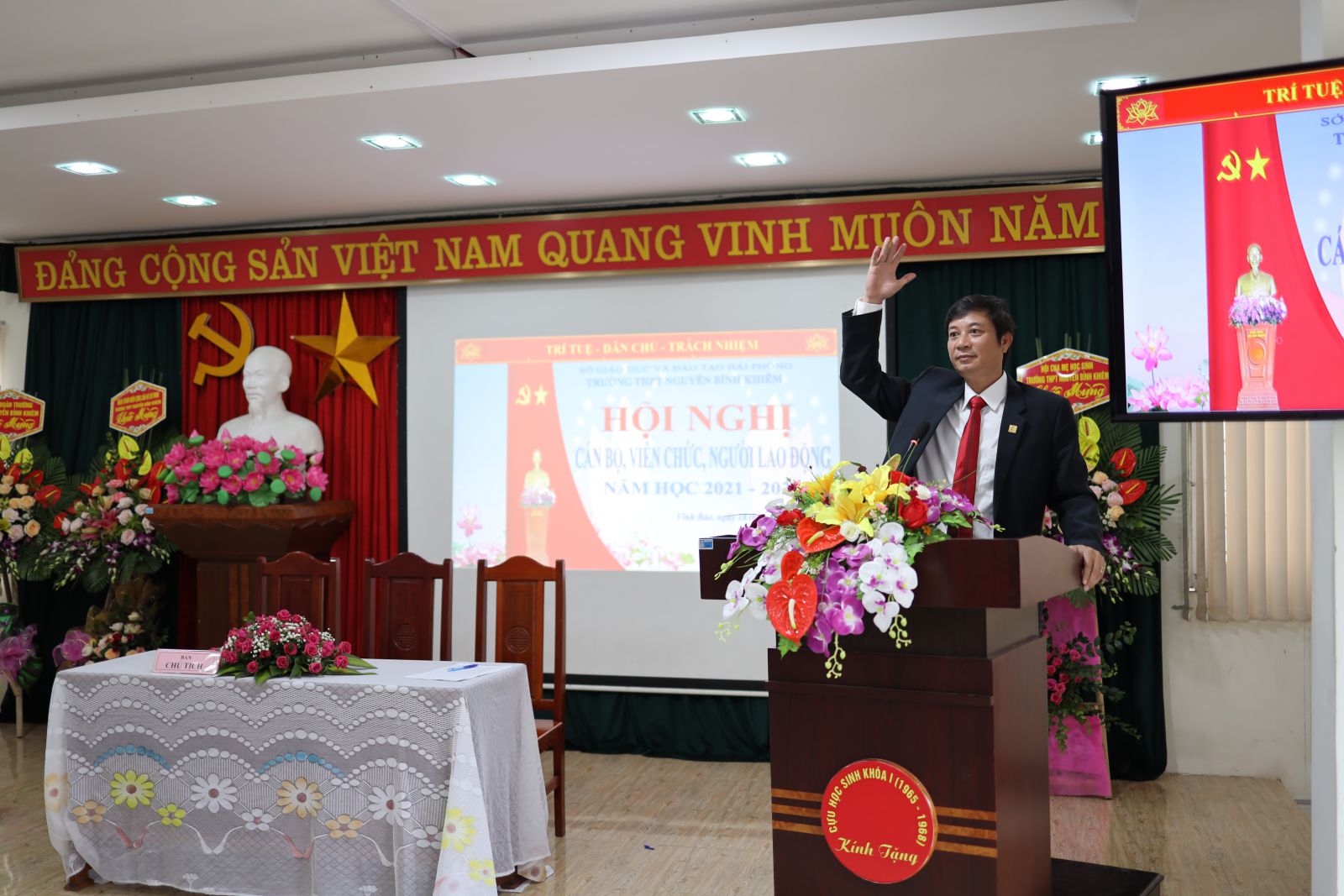 Hội nghị cán bộ viên chức, người lao động năm học 2021-2022 đã diễn ra thành công tốt đẹp trong không khí làm việc khẩn trương, trách nhiệm, nhất trí cao.