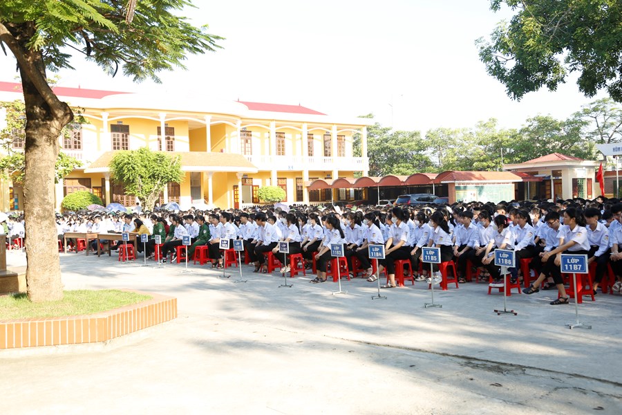Bài hát Tiến quân ca vang lên đánh thức lòng yêu nước, niềm tự hào dân tộc sâu sắc của toàn thể thầy và trò nhà trường. Sau nghi lễ chào cờ thiêng liêng là phần phát biểu tổng kết các hoạt động tháng 9 của thầy giáo phó bí thư Đảng bộ - phó hiệu trưởng Bùi Thái Hiển về những mặt đạt được và những điểm tồn tại, cần khắc phục từ đó đưa ra hướng giải quyết để các tập thể và cá nhân phát huy thế mạnh, hạn chế khuyết điểm.