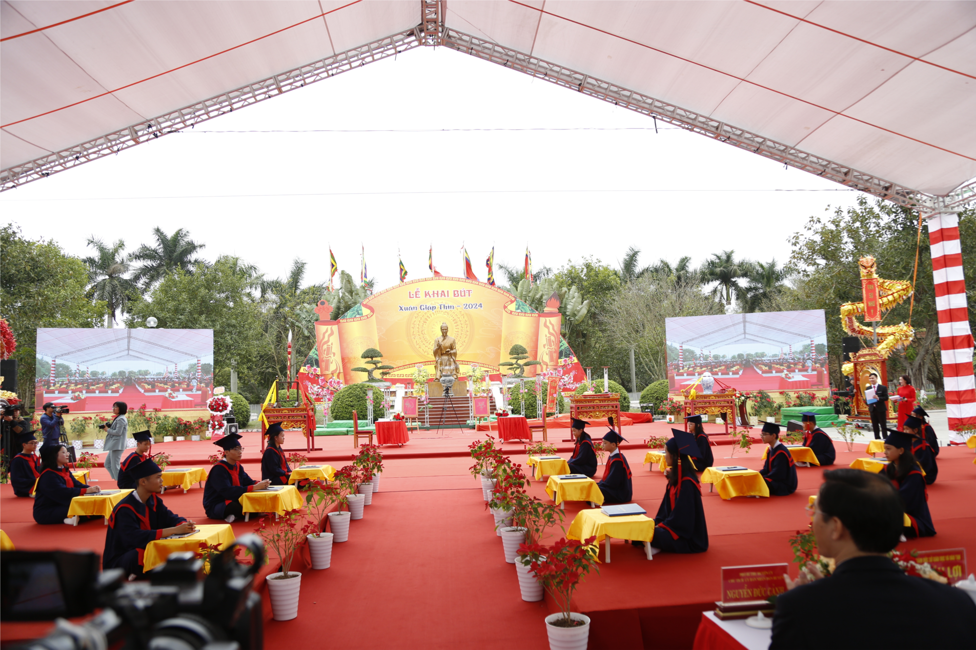 Tục khai bút đầu năm được lưu truyền, không những cho sự hiếu học mà còn thể hiện truyền thống tôn sư trọng đạo, sự thành kính của trò đối với người thầy. Thực hiện Kế hoạch của UBND huyện Vĩnh Bảo về việc tổ chức Lễ khai bút Xuân Giáp Thìn 2024 tại Đền thờ Trạng Trình Nguyễn Bỉnh Khiêm. Sáng ngày 15/2/2024 (tức mùng 6 Tết Giáp Thìn), Trường THPT Nguyễn Bỉnh Khiêm triển khai tham gia lễ hội với 228 em học sinh và giáo viên nhà trường, tạo một hiệu ứng tích cực cho buổi "Lễ Khai bút " đầu xuân Giáp Thìn 2024. Khai bút đầu xuân là hoạt động chào mừng Xuân mới, tôn vinh đạo học, truyền thống tôn sư trọng đạo, uống nước nhớ nguồn của dân tộc Việt Nam; đẩy mạnh công tác khuyến học, khuyến tài, góp phần thúc đẩy tinh thần hiếu học, xây dựng trí tuệ con người Việt Nam. Đặc biệt rất vinh dự cho trường THPT Nguyễn Bỉnh Khiêm có 2 thầy cô xuất sắc nhất đại diện cho trường tham gia viết khai bút là thầy Nguyễn Văn Đặng và cô Nguyễn Thị Nhung, về phía học sinh cũng có 2 bạn tiêu biểu đại diện cho 1395 học sinh của trường đó là bạn Phạm Vũ Gia Huy lớp 11B1 và bạn Đào Vũ Ánh Dương lớp 10C1. Việc khai bút đầu xuân tượng trưng cho sự khởi đầu tốt đẹp của mọi hoạt động, gửi gắm tâm tư, nguyện vọng về một năm mới bình an, hạnh phúc và thành công. Thông qua các hoạt động của buổi lễ góp phần bảo tồn và phát huy truyền thống lịch sử văn hóa của dân tộc, giáo dục truyền thống hiếu học, tạo thêm động lực phấn đấu cho các em học sinh. Buổi lễ Khai bút đã diễn ra thành công, chúc cho các thầy cô và các em học sinh khởi đầu mới bình an, hạnh phúc, gặt hái được nhiều thành công trong công tác dạy và học !
