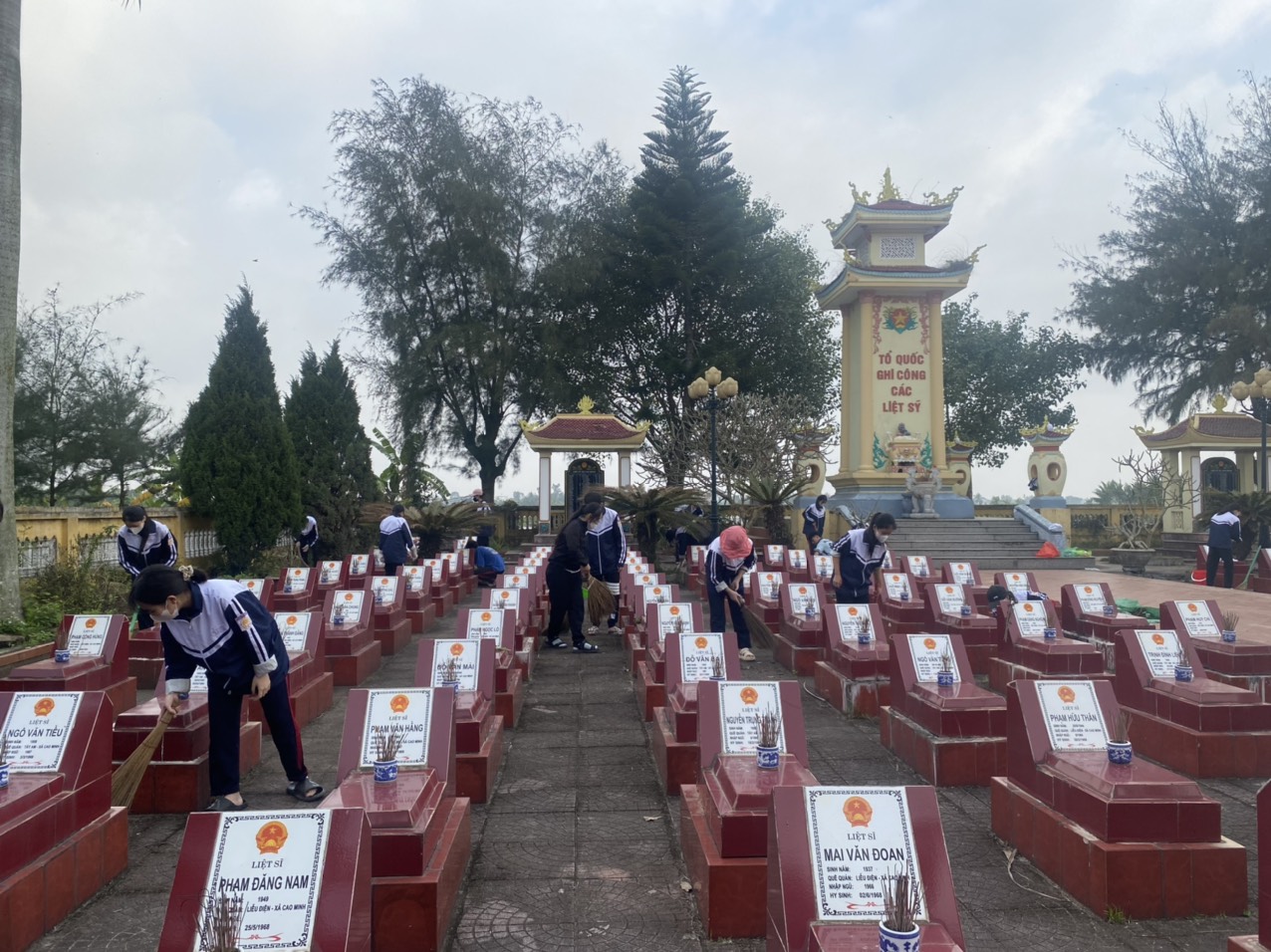 địa phương kết hợp với Đoàn trường THPT Nguyễn Bỉnh Khiêm đã tiến hành dọn dẹp vệ sinh khu nghĩa trang Liệt sỹ xã Cao